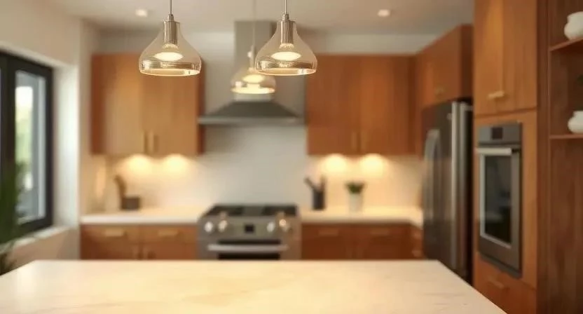 - Кухня: Нейтральный свет, точечные светильники, подсветка рабочей поверхности.