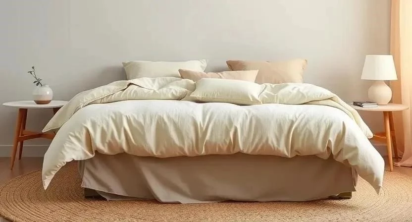 Вопрос: Как создать уютную атмосферу в спальне, оформленной в теплых нейтральных тонах?