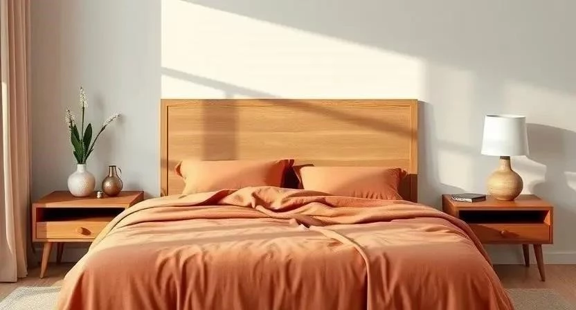 Спальня – это место, где мы отдыхаем и восстанавливаем силы, поэтому важно создать в ней спокойную и расслабляющую атмосферу. Сочетание терракотового и дерева идеально подходит для спальни. Терракотовый цвет можно использовать для отделки стен, текстиля или декоративных элементов. Деревянная мебель, такая как кровать, прикроватные тумбочки или комод, добавит интерьеру тепла и природности. Важно выбрать мягкие и приятные на ощупь ткани для текстиля. Например, можно использовать терракотовые шторы из натурального льна и деревянную кровать с мягким изголовьем. Я всегда советую своим клиентам использовать приглушенные оттенки терракотового в спальне, чтобы создать более спокойную атмосферу.