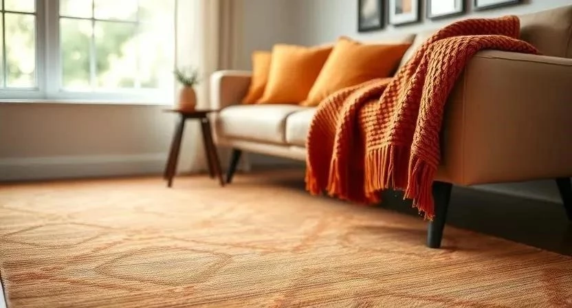 Ответ: Для гостиной подойдут ковры, шторы, подушки и пледы терракотового цвета.