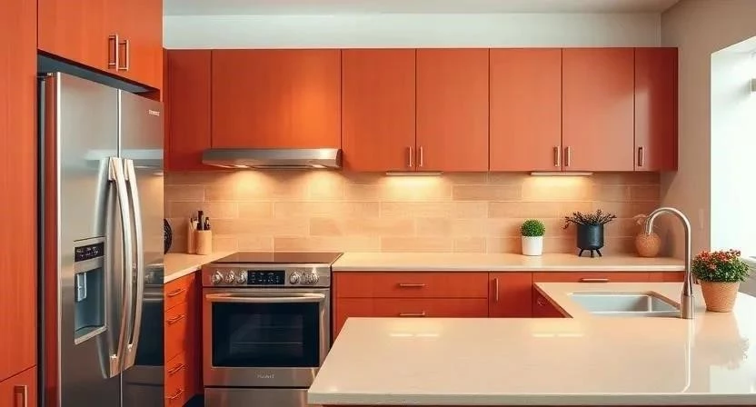 | Кирпичный | Классический терракотовый оттенок, напоминающий цвет кирпича | Кухонный фартук |