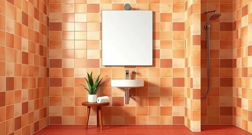 - Керамическая плитка: Керамическая плитка терракотового цвета идеально подходит для отделки ванной комнаты и кухни.