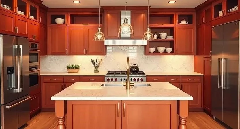 - Кухня: Терракотовый цвет придаст кухне тепло и уют. Он хорошо сочетается с деревянной мебелью и керамической плиткой.