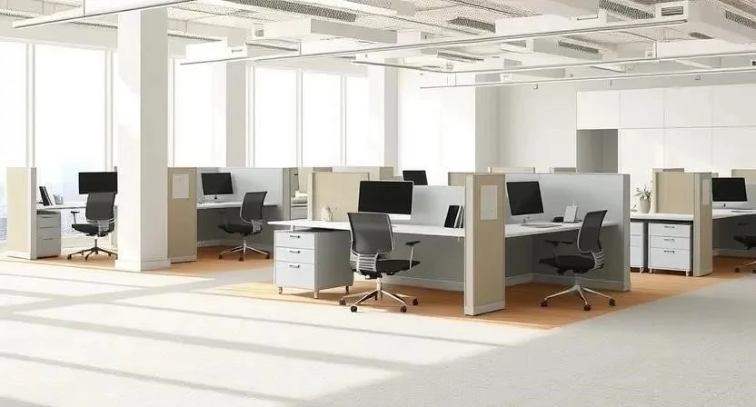 Как использовать цвет для зонирования пространства? – Используйте разные цвета для разных функциональных зон, например, более насыщенные цвета для переговорных комнат и более спокойные цвета для рабочих мест.