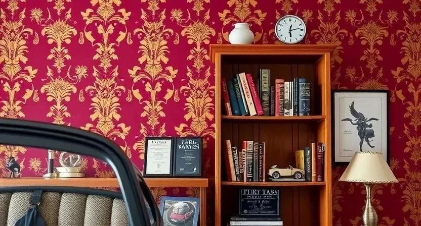 Винтажные обои гармонично сочетаются с мебелью из натурального дерева, кожаными креслами, антикварными светильниками и текстилем с винтажным рисунком. Важно соблюдать единый стиль во всех элементах интерьера. Освещение должно быть мягким и рассеянным, чтобы подчеркнуть красоту обоев. Декор может включать в себя старинные фотографии, картины, вазы и другие предметы, которые создают атмосферу уюта и роскоши. Не перегружайте пространство деталями, чтобы не создать ощущение хаоса.