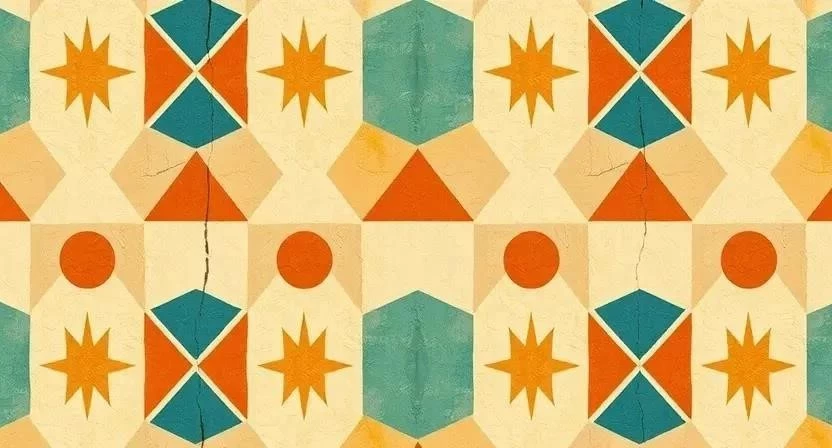 - Геометрические узоры: Клетка, полоска, ромбы, абстрактные фигуры.