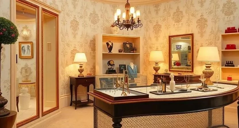 Примеры использования винтажных обоев в магазинах аксессуаров
