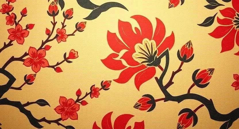 - Японский стиль: Обои с изображением сакуры, бамбука, волн.