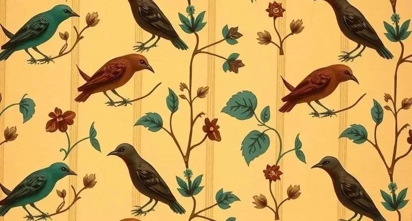 | Викторианский | Бумага, текстиль | Цветочные мотивы, дамаск | Роскошь, насыщенные цвета, сложные узоры |