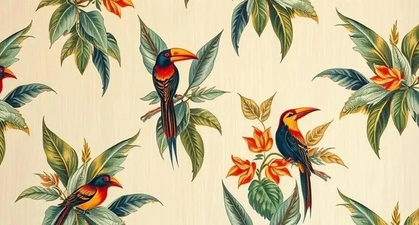 Винтажные обои с ботаническим принтом представлены в широком разнообразии. Их можно классифицировать по рисунку: цветы (розы, пионы, маки), листья (пальмовые, кленовые, дубовые), птицы, бабочки. По материалу: бумага (экологичный, но менее долговечный вариант), флизелин (прочный, легко клеится), винил (влагостойкий, подходит для кухни и ванной). По стилю: ретро (яркие цвета, геометрические узоры), прованс (пастельные тона, цветочные мотивы), шебби-шик (искусственно состаренные, с эффектом потертости).