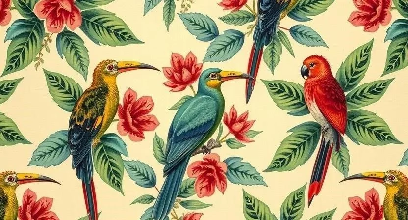 Существует множество видов винтажных обоев с растениями, которые можно классифицировать по нескольким параметрам. По типу растений выделяют обои с пальмами, лианами, крупными экзотическими цветами и мелкими полевыми цветами. По стилю можно выделить тропические обои, обои в стиле ретро и шебби-шик. А по материалу – бумажные, флизелиновые и виниловые. Бумажные обои – самый экологичный вариант, но менее долговечный. Флизелиновые обои легко клеятся и скрывают небольшие неровности стен. Виниловые обои отличаются высокой прочностью и влагостойкостью.