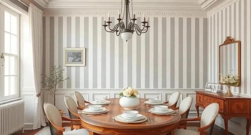 Винтажные полоски представлены в самых разнообразных вариантах. Вертикальные полоски визуально увеличивают высоту потолка, делая помещение более просторным. Горизонтальные полоски, напротив, расширяют пространство, но могут визуально уменьшить высоту потолка. Широкие полоски создают смелый и эффектный образ, а узкие – более сдержанный и элегантный. Цветные полоски добавляют интерьеру яркости и динамики, а черно-белые – классическую элегантность. Комбинирование полосок разных цветов и ширины позволяет создавать уникальные и неповторимые дизайны.