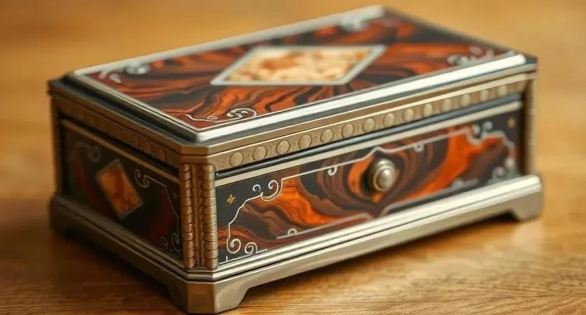 - Шкатулки из металла: Часто украшены ониксом, перламутром или эмалью. Металлические шкатулки могут быть выполнены в различных стилях – от классического до модерна.