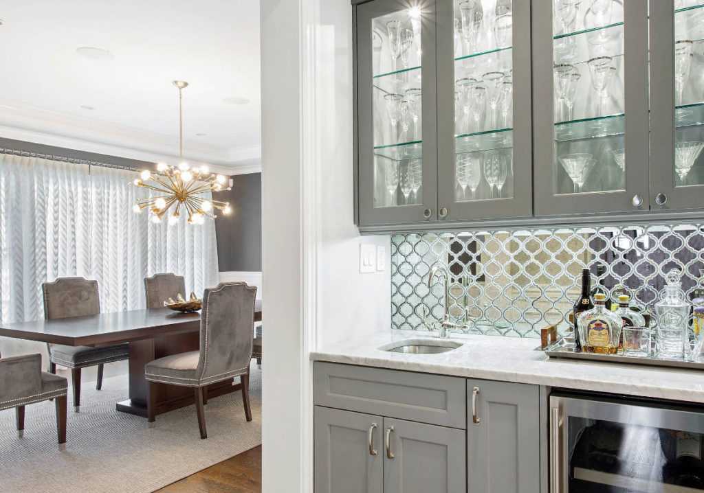 Плитка с имитацией металлической поверхности (бронза, серебро, золото) подходит для всех стилей. Материал с обычным или фактурным рисунком (фактурой) придает интерьеру индивидуальность и выразительность. Тонированная зеркальная плитка отличается разными оттенками поверхности стекла или амальгамы: дымчато-серые, белые, розовые. Зеркальная мозаика впишется в стили арт-деко и модерн.