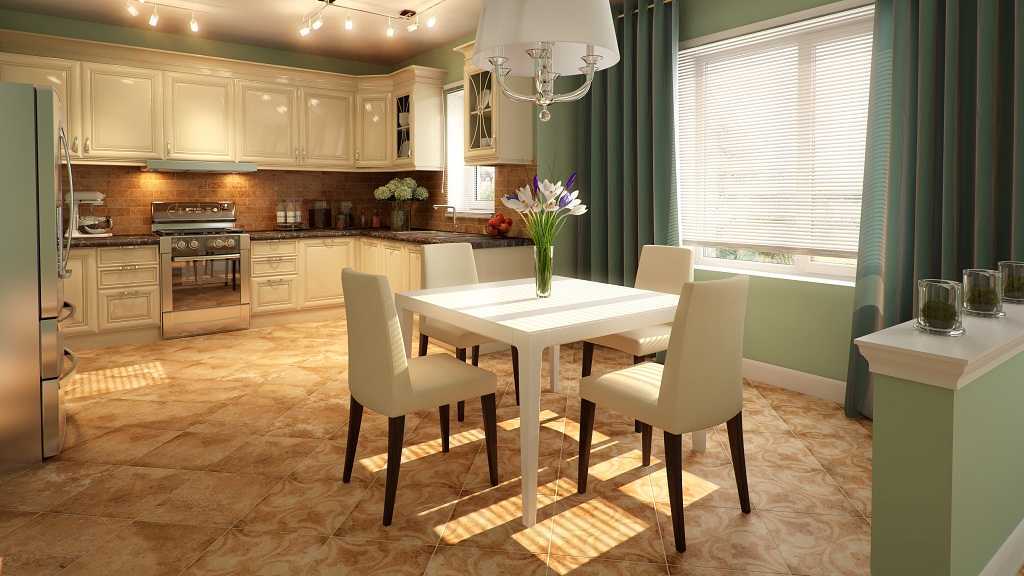 Для любой кухни хорошим выбором будет керамогранитный пол