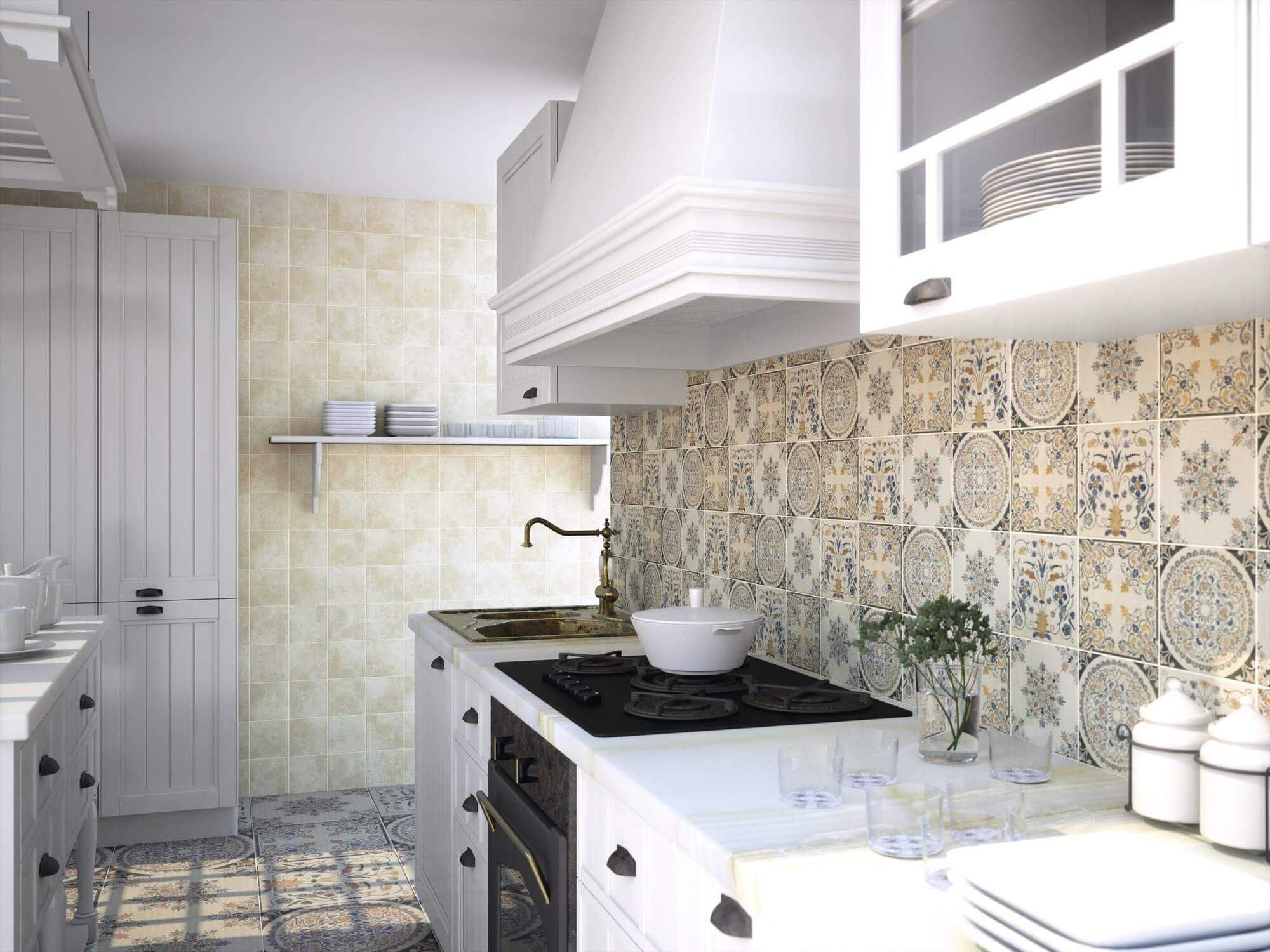 Вторым по популярности помещением, где используется данный отделочный материал, является кухня. Здесь плиткой обычно отделывают фартук около разделочного стола. Нередко кафель укладывают и на пол, так как убрать загрязнение с такого напольного покрытия достаточно просто, а на кухне испачкать его проще простого.