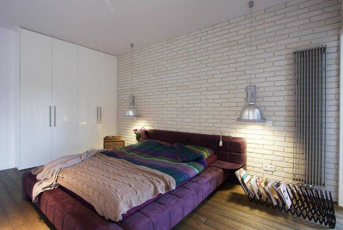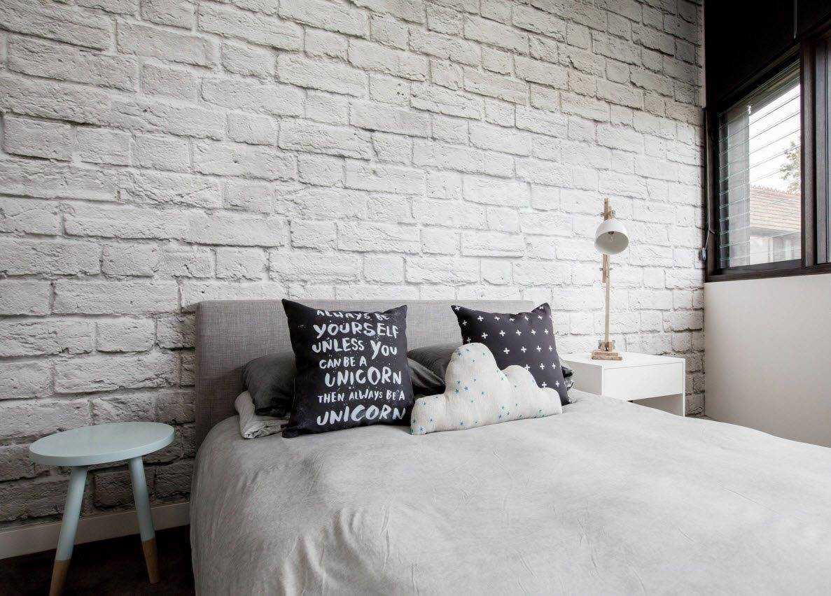 Кирпич может быть уложен у изголовья кровати, чтобы подчеркнуть зону для отдыха. Другим плюсом такого размещения является то, что во время отдыха человек не вынужден постоянно наблюдать гипсовую отделку