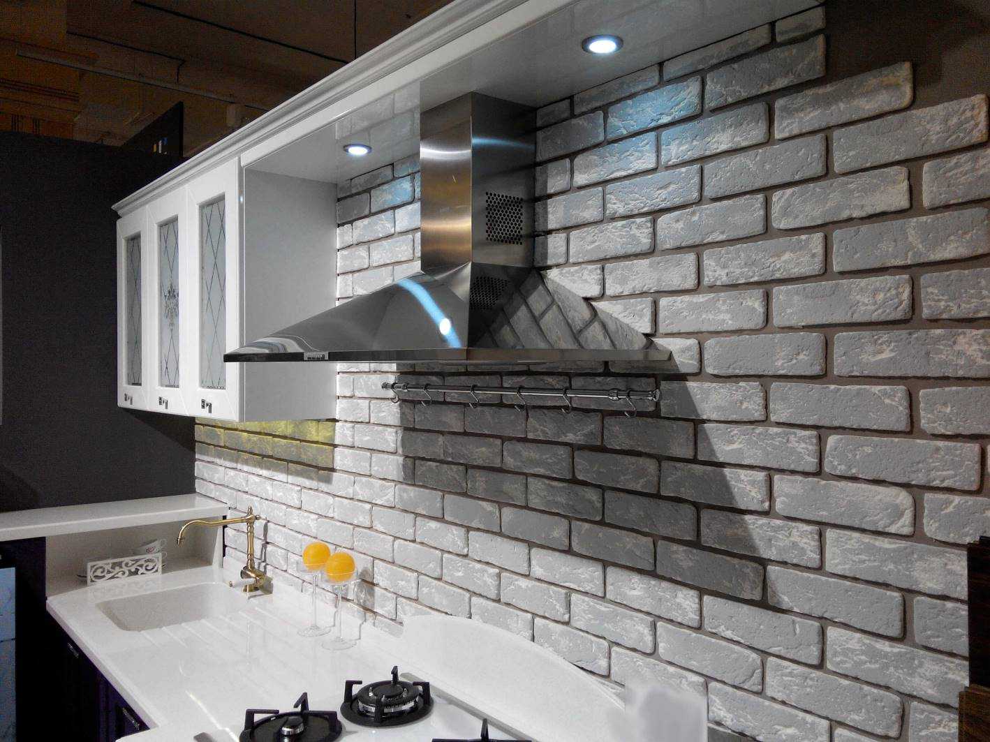 Декоративная гипсовая плитка подходит и для оформления кухонного пространства. Тут при помощи нее можно задекорировать, к примеру, вентиляционный короб. Кроме того столешница обеденного стола либо барной стойки, выполненные из гипсовых плиток будут смотреться просто шикарно. А вот фартук в моечной зоне отделывать гипсом не рекомендуют ввиду непрактичности и быстрой утраты эстетичности.