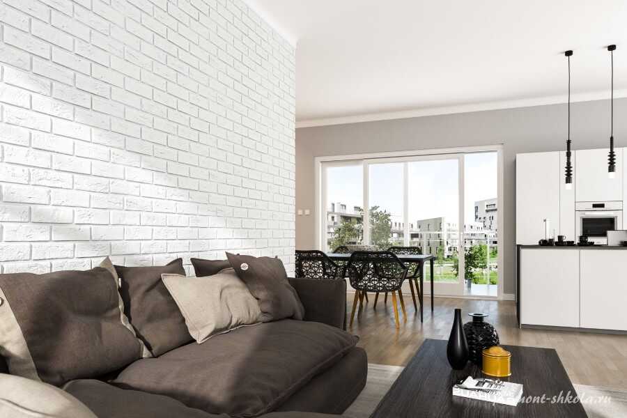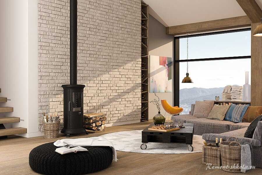 Другим плюсом такого размещения является то, что во время отдыха человек не вынужден постоянно наблюдать гипсовую отделку. При желании выложить кирпич на стены необходимо подбирать для него светлые тона, которые помогут настроиться на трудовой день и положительный лад.