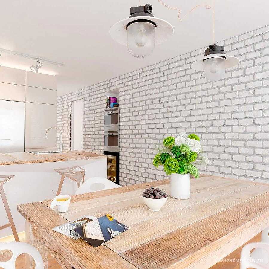 В интернете представлено большое количество фото обоев под кирпич в комбинации с другими материалами.