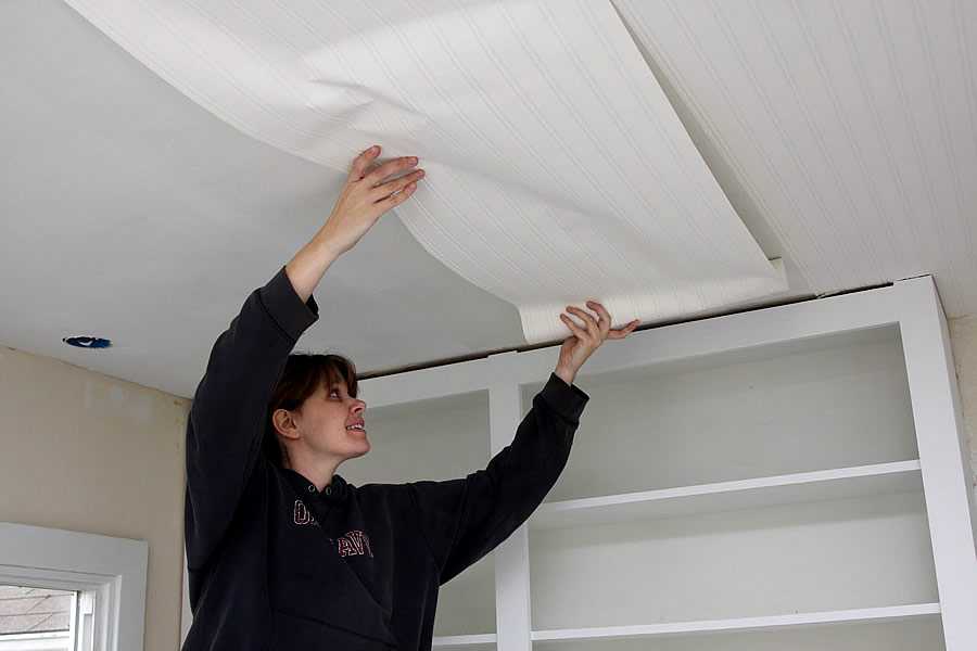 Потолок не трудно обклеить обоями в отличие от других видов отделки