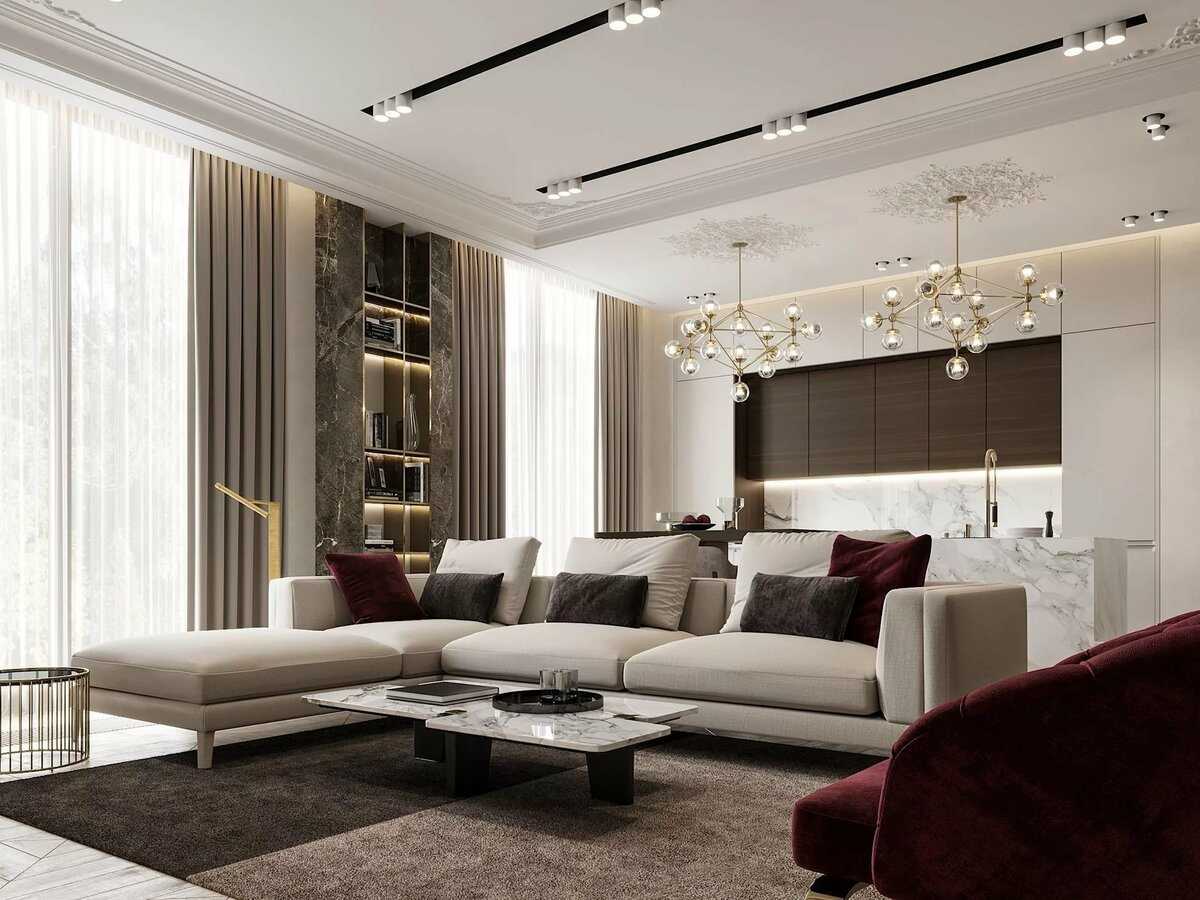 В оформлении интерьера 2021 года это реализовано с помощью использования элементов античной архитектуры, классического декора, лепнины, позолоты. В текстиле отдается предпочтение сложным, глубоким оттенкам: сапфировому, изумрудно-зеленому, винному. Фото ниже демонстрируют последние тренды элементов декора и новые тенденции цветовой гаммы.