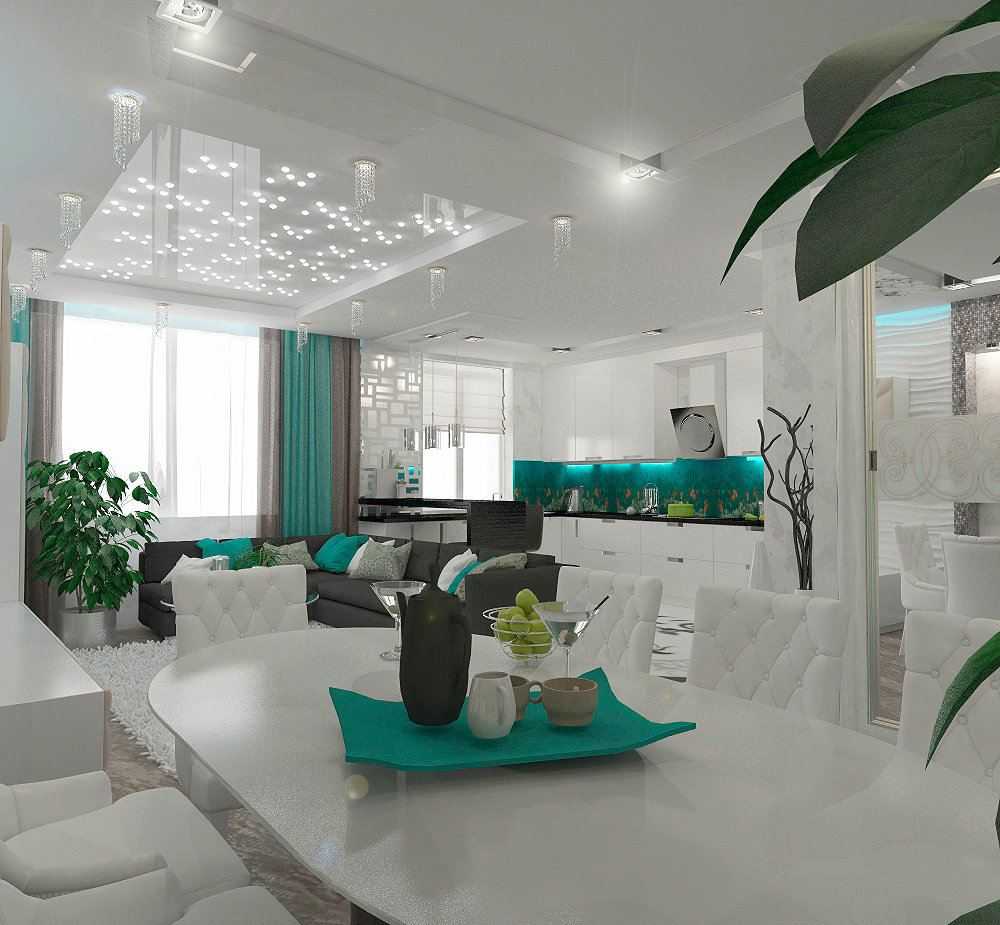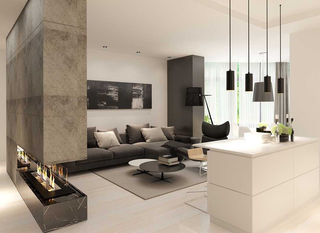 Для выделения участков комбинируем разных цветов, декора или фактур. Такой способ четко определяет границы отдельных зон, позволяя сохранить эффект простора.