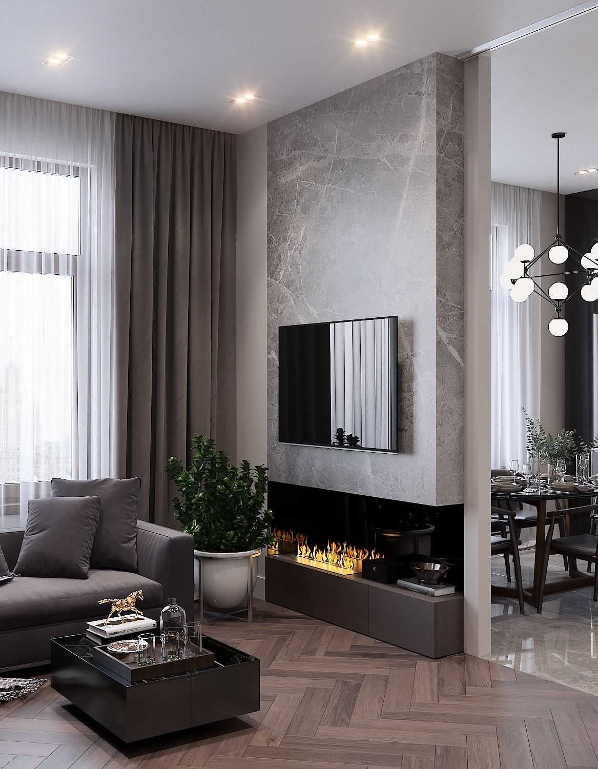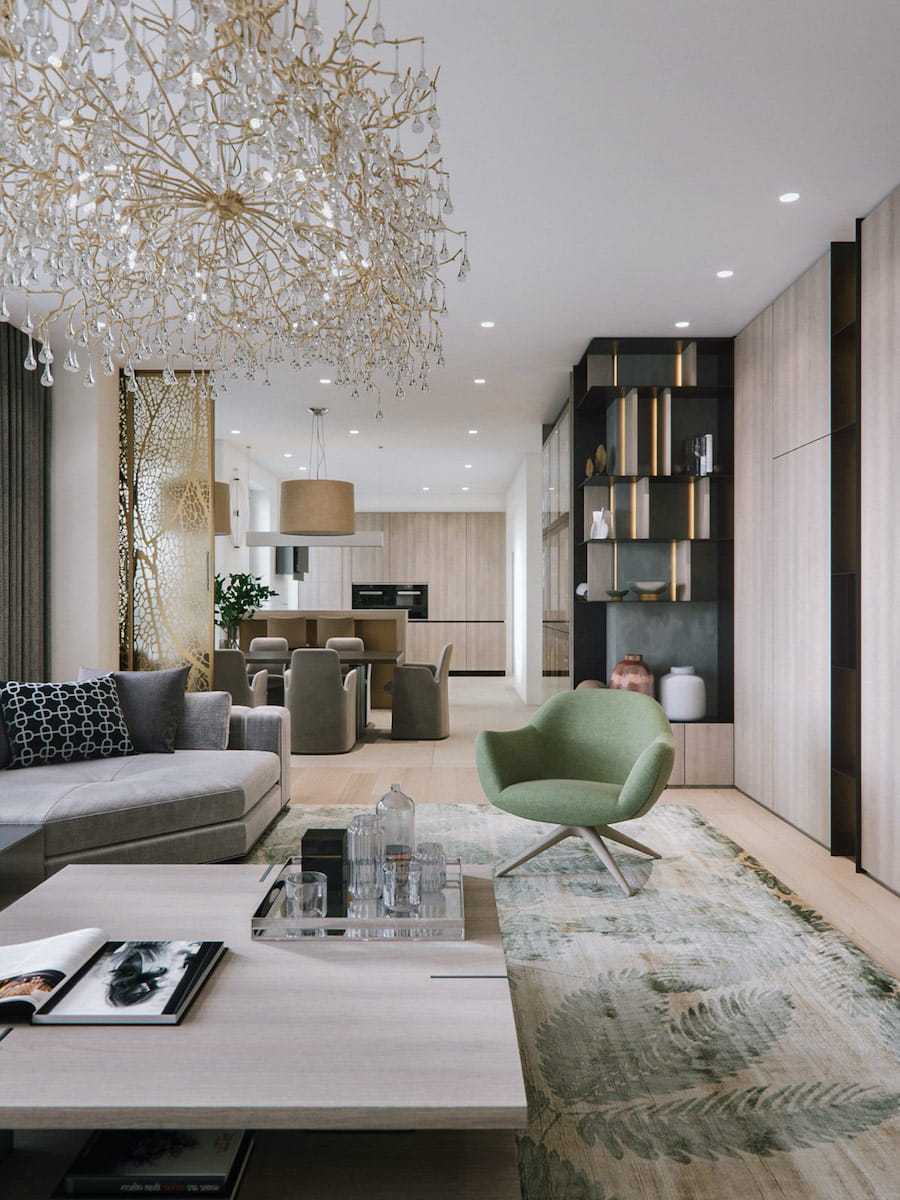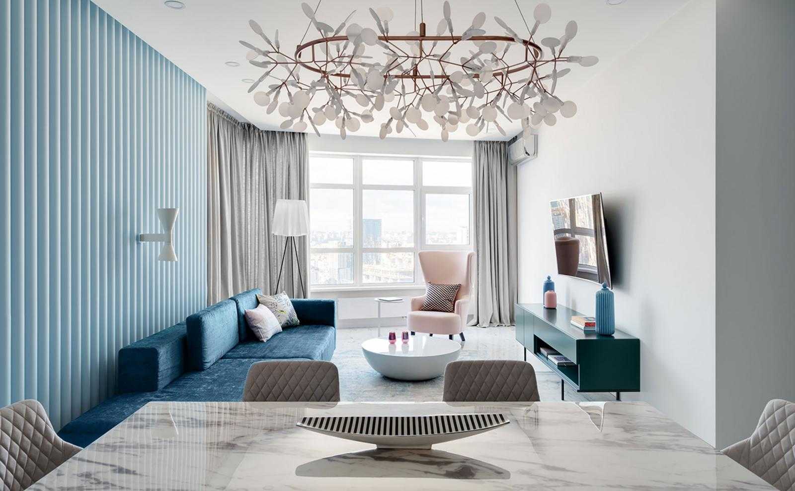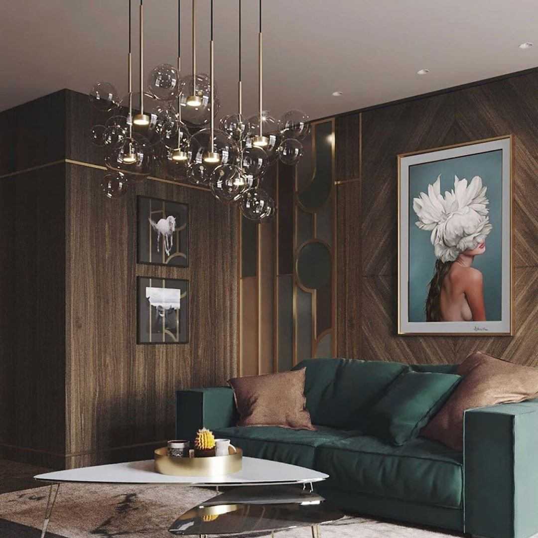 Стеклянные шарики и металлические колеса — модные светильники для гостиной в 2020 году