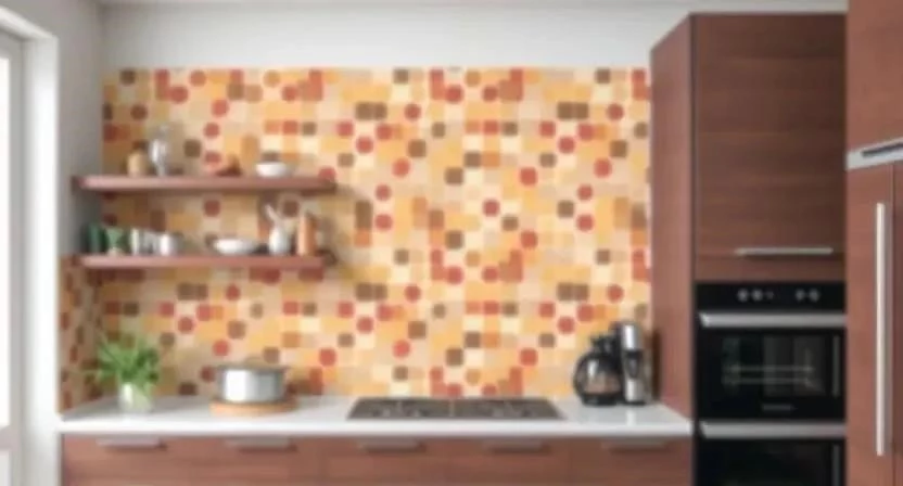 - Кухня: Виниловые обои с мозаичным рисунком, защищающие стены от влаги и загрязнений.
