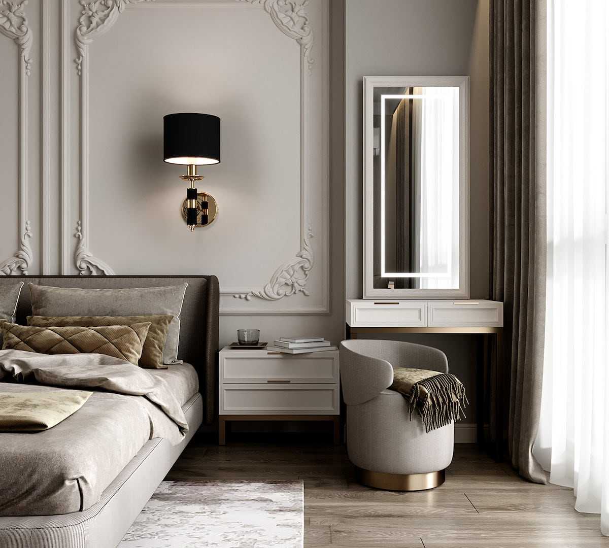 Классический стиль основывается на плавных переходах, стандартных формах, скромности и сдержанности. Поэтому из розовых оттенков чаще всего используются пыльные, пепельные, пастельные тона. Обои могут быть однотонными или с неярким рисунком. Приветствуются сочетания розового с серыми, древесными, бежевыми гаммами.