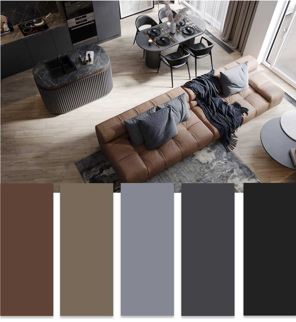 Как и любое другое цветовое решение, темные варианты имеют ряд своих преимуществ и недостатков. К преимуществам можно отнести возможность скрадывать избыток света, например, это может быть актуально в помещении, расположенном на солнечной стороне, где свет чаще всего слепит ранним утром и держится на протяжении всего дня. С помощью темных цветов можно с легкостью выделить определенные зоны пространства и создать гармоничный правильный интерьер.
