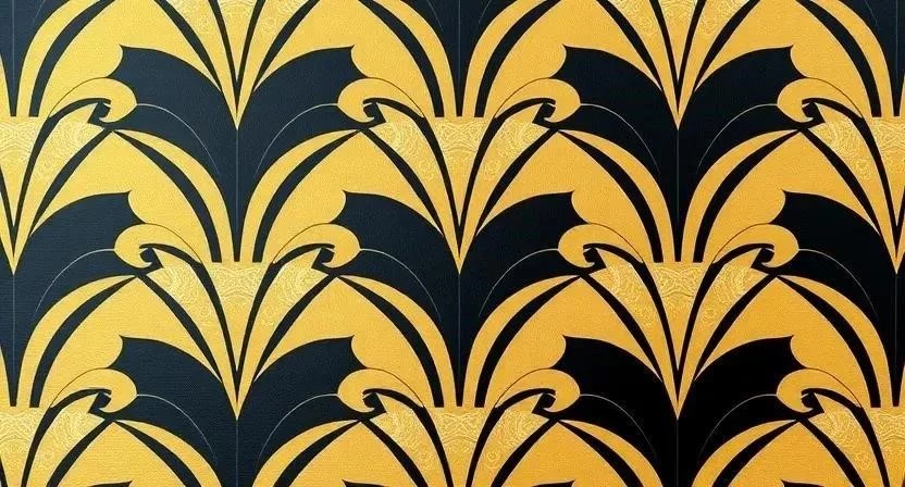 Для Ар-Деко характерны геометрические узоры, зигзаги, ступенчатые формы, растительные мотивы и изображения животных. Популярны узоры в виде солнечных лучей, вееров, ромбов и треугольников. Выбор узора зависит от размера помещения и общей концепции дизайна. В небольших комнатах лучше использовать обои с мелким и ненавязчивым рисунком, а в просторных помещениях можно позволить себе более крупные и сложные узоры.