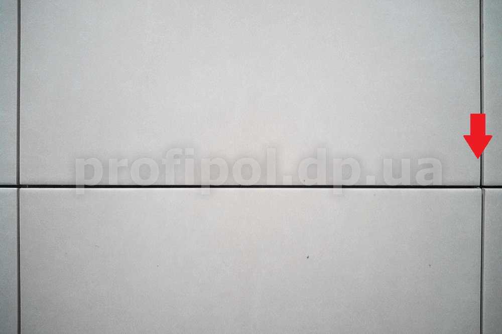 Углы прямые, линии ровные. Сама плитка чуть выгнута наружу («пузом»).