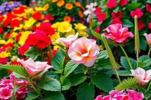 - разноцветные цветы;