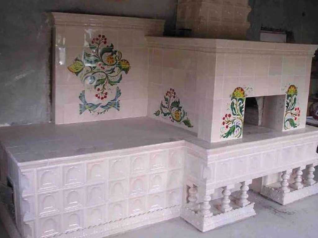 С древних времён отделка изразцовой печи считалась искусством, а обладающие подобным навыками мастера пользовались особым почётом. Основная особенность работы с данным материалом заключается в том, что сначала устанавливаются сами изразцы, и после непосредственно к ним крепится кирпичная основа печи. Изразцы могут быть разных видов (карнизные, плоские, угловые), однако, за счёт наличия внутренней румпы они собираются в нарядно расписанный глазированный керамический короб.