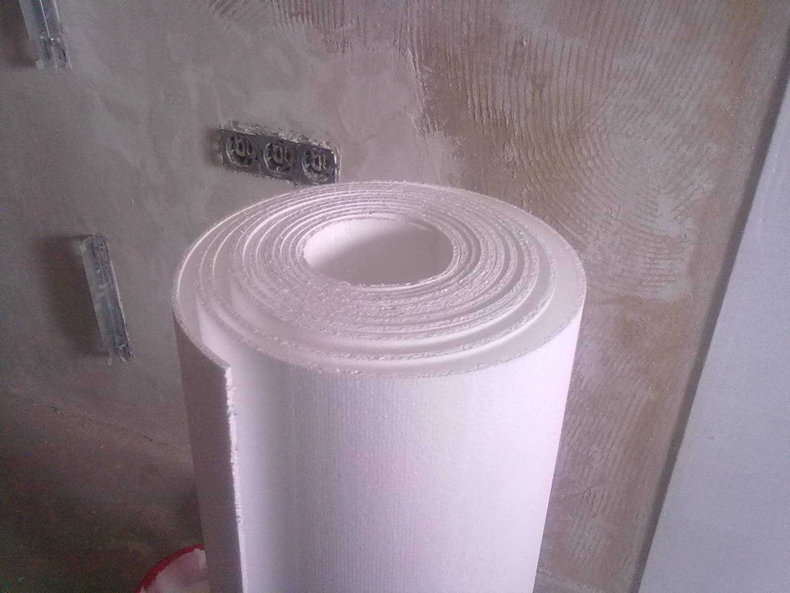 Изоляционное полотно раскроить. Разметить, отрезать фрагменты необходимой длины. Подложка эластична, имеет небольшой вес, поэтому исключен дискомфорт в процессе работы.