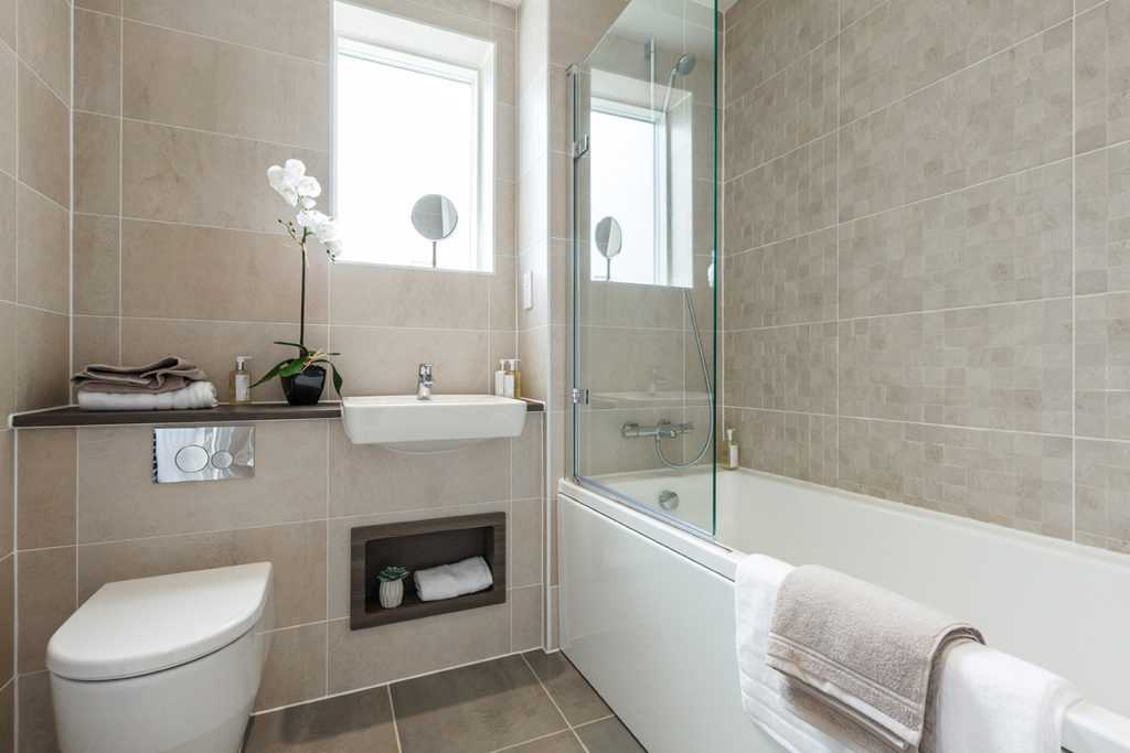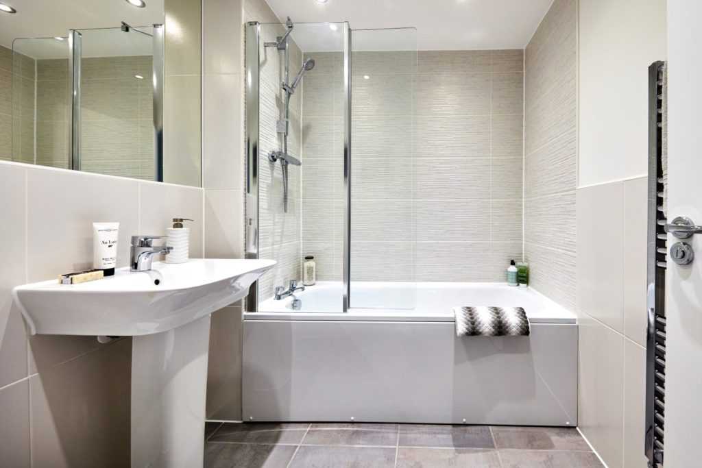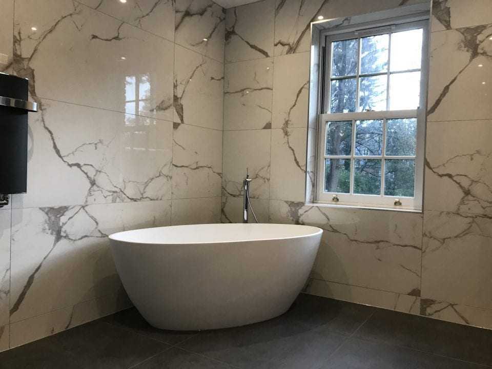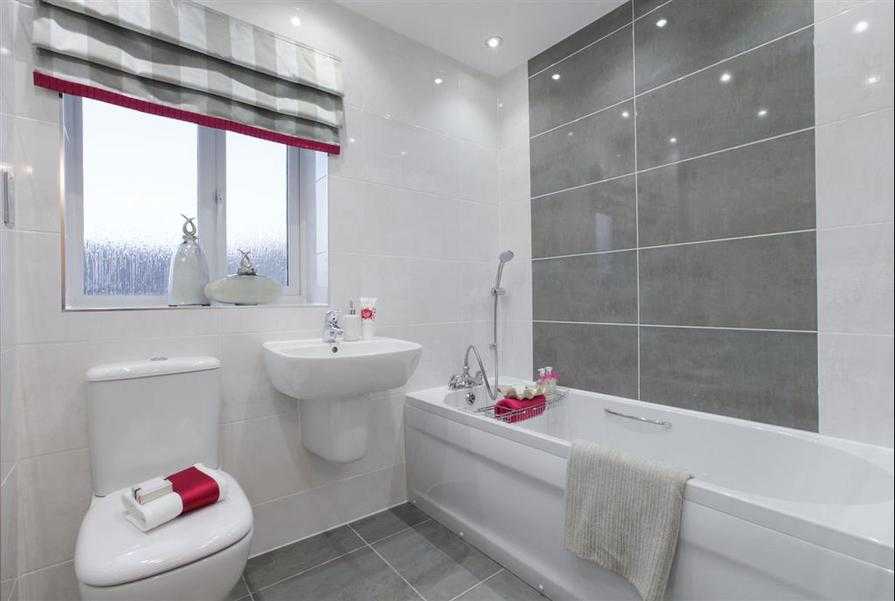 оформление стен ванной комнаты большой широкой плиткой горизонтальным способом