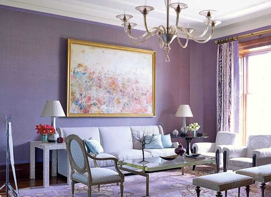 Сиреневая гостиная в разных стилях