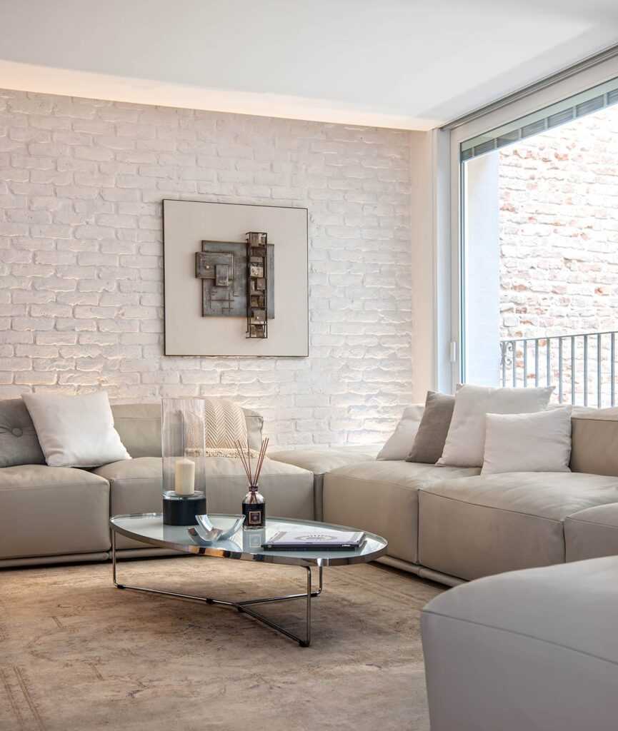 Интерьер гостиной считается модным, если ее стены отделаны камнем или кирпичом. Но это не означает, что этими материалами на самом деле облицовываются стены. Для этого существуют фактурные, которые от настоящей стены отличить практически невозможно.