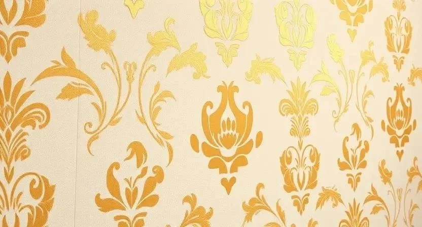 - Гостиная: Можно использовать обои с крупным узором (дамаск, цветочные мотивы) в сочетании с однотонными обоями.