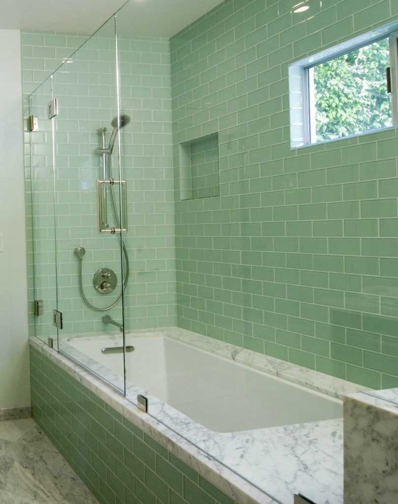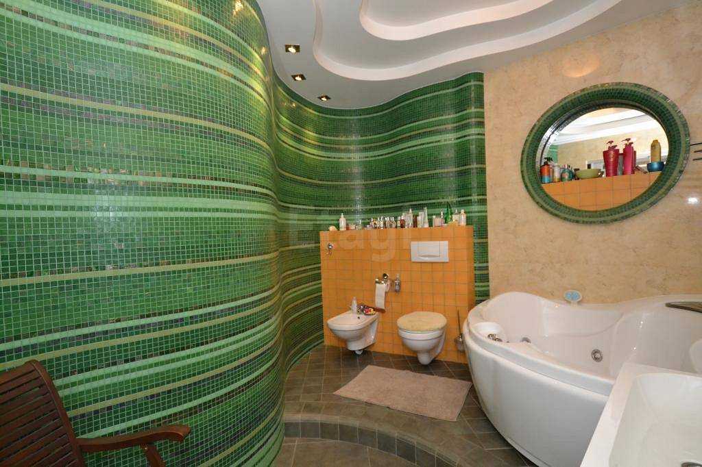 Керамическая плитка – классический материал в ванной. Зеленым кафелем можно декорировать любую поверхность в ванной. Дизайнеры при отделке этого помещения часто применяют следующие приемы:
