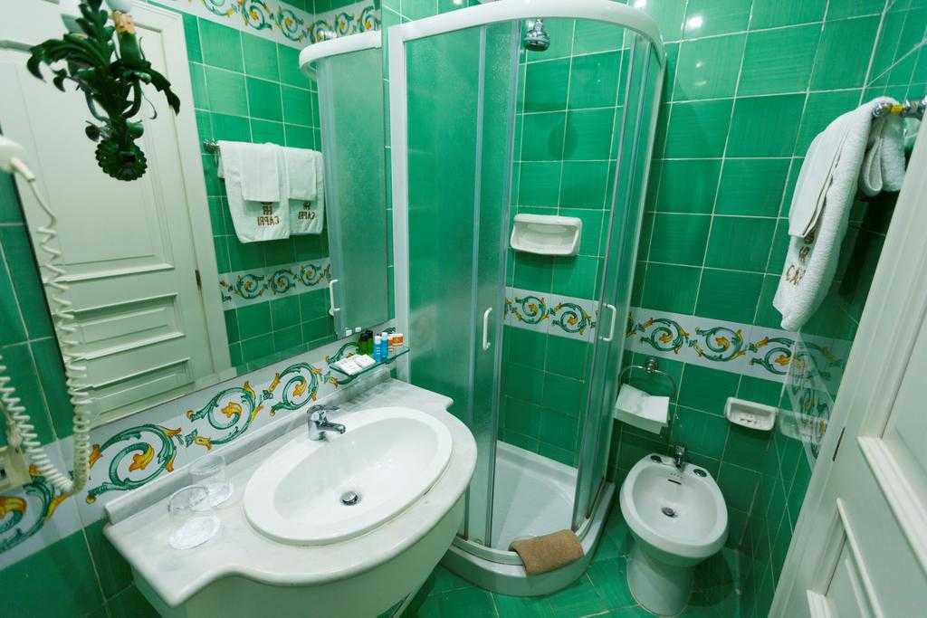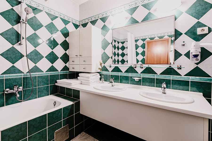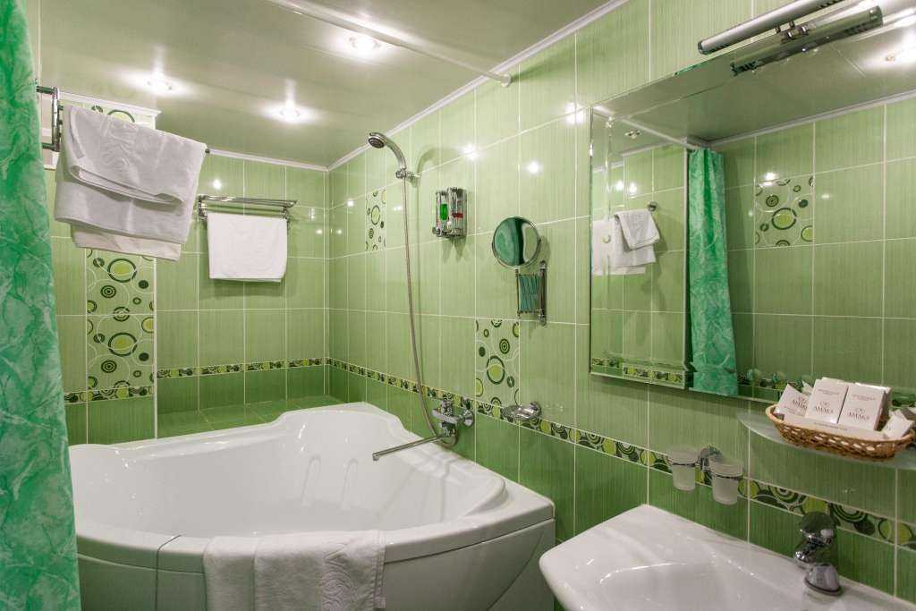 Разнообразие цветовых решений, габаритов зеленой плитки и прекрасные комбинации с другими расцветками позволяют использовать ее для создания в ванной самых разных стилей.