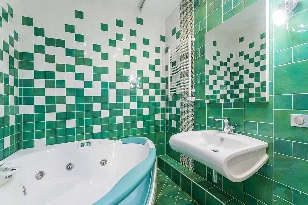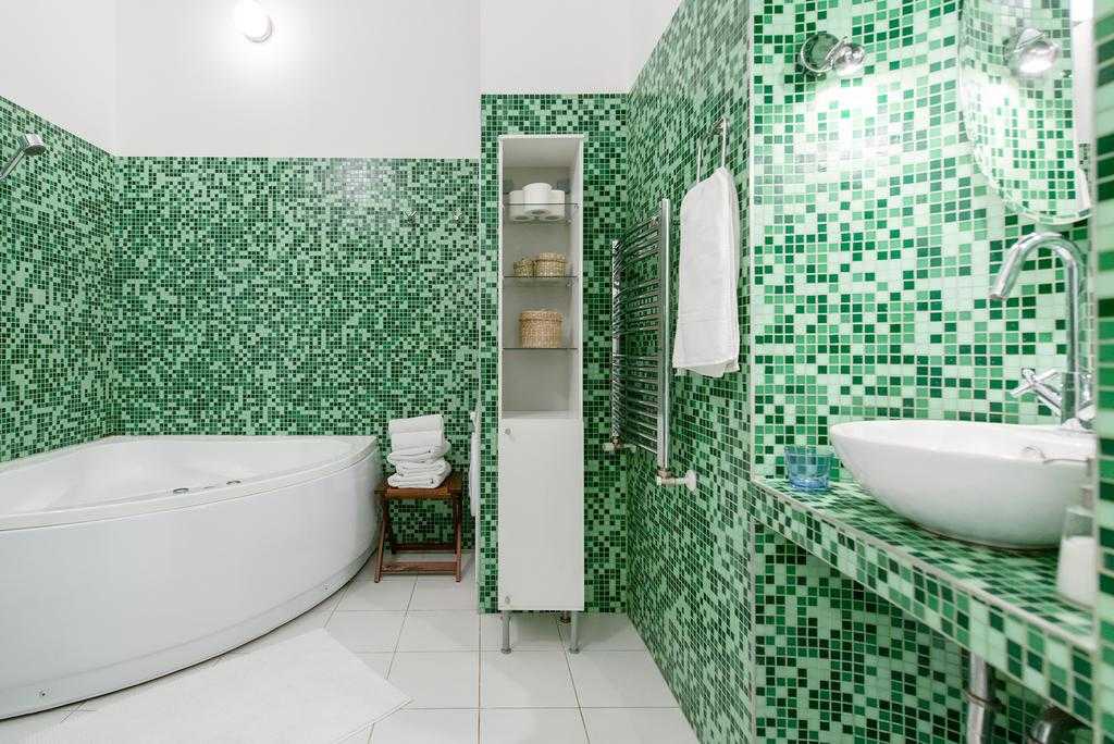 Если помещение выложить плиткой ядовито-зеленого или темно-зеленого цветов, то создастся впечатление дизайна 60-80-х годов.