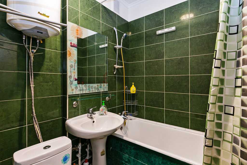 Кто-то считает зеленый оттенок слишком навязчивым, другие наоборот склоняются к мнению, что его нужно использовать в интерьере как можно чаще, так как он способствует успокоению психического состояния. Что касается именно ванной комнаты, то в таком оттенке, она обладает рядом плюсов и минусов. Сначала поговорим о положительных качествах: