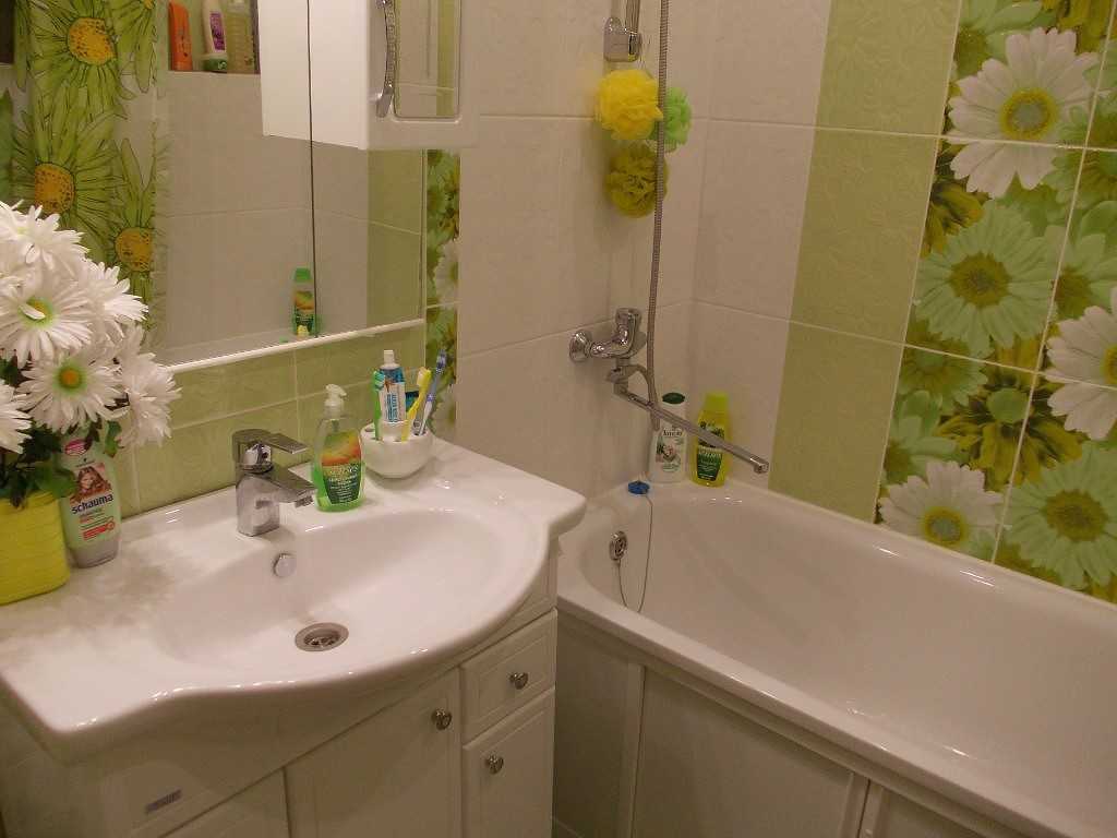 - облицовка насыщенной по цвету плиткой стены у ванны, а остальных поверхностей – в светлых тонах;